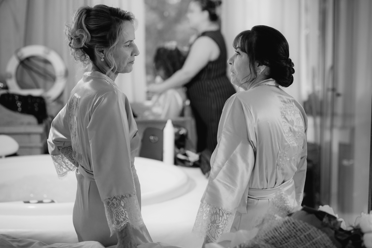 noiva e as mães olhando o vestido da noiva