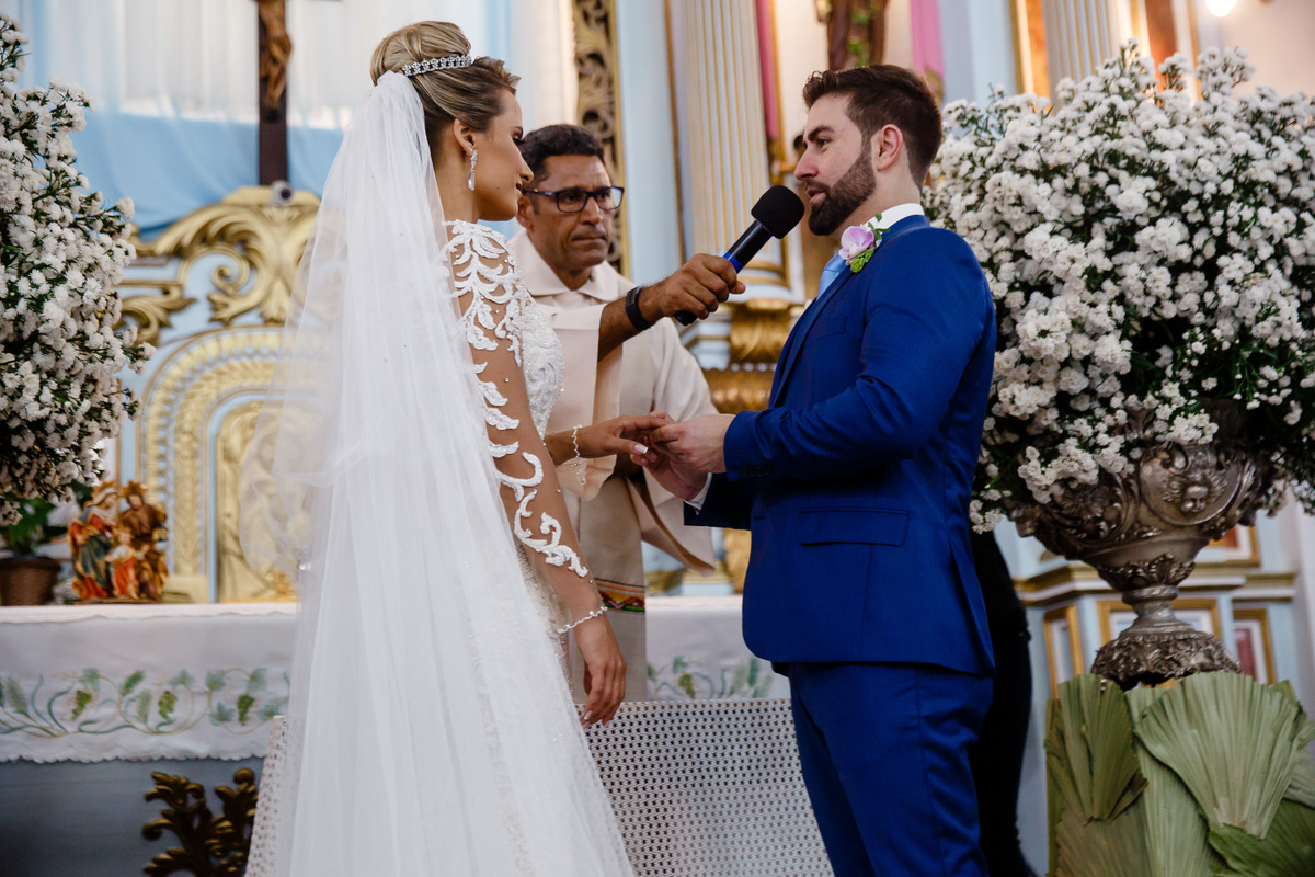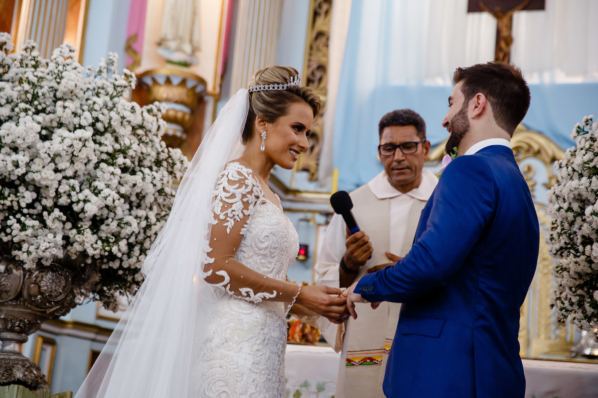 noiva colocando a aliança - Matriz de santo Antonio